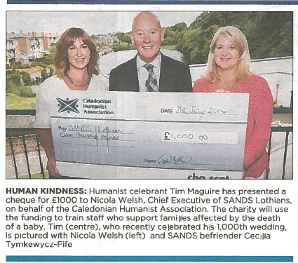 I was delighted to do that last month when I gave a cheque for £1,000 to Sands Lothian. (You can read the story that appeared in the Edinburgh Evening News here)