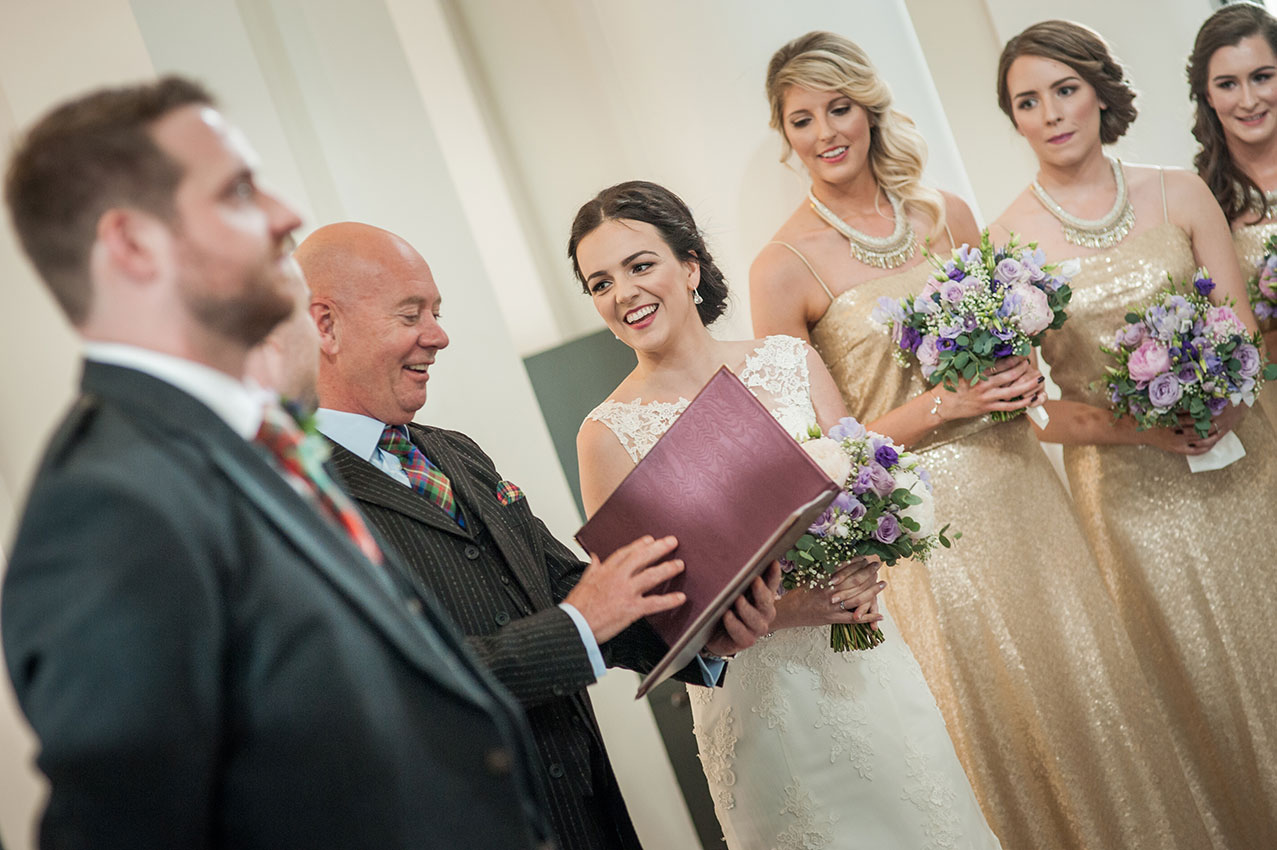 They did a lot of things differently right from the get go when Craig came in with his parents, followed by their wedding party and finally Holly with her parents, all to the sound of Stand Up by The Prodigy – definitely not your run of the mill wedding tune!