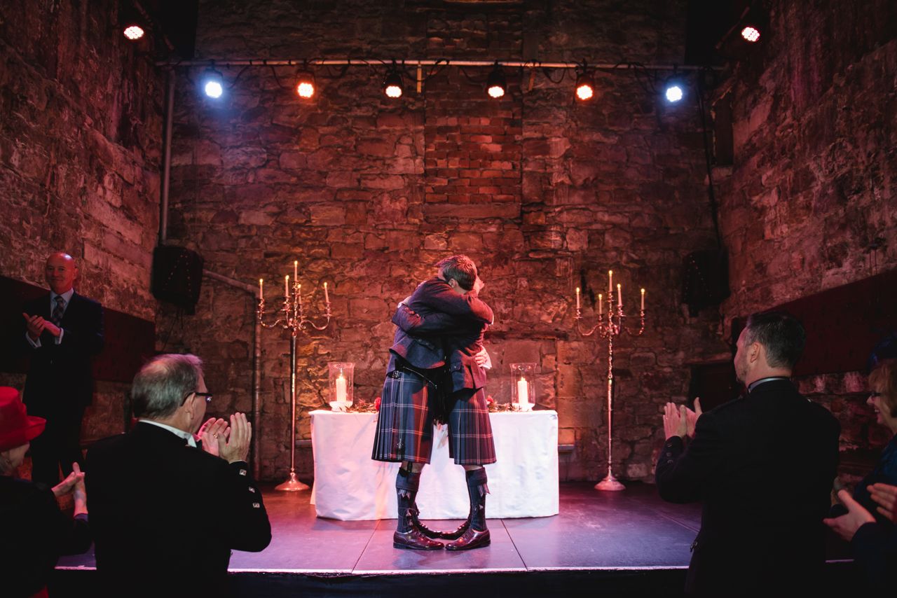 Now as you can see, in both those cases, the couples themselves decided what the questions should be, but Ewan and Stewart took it on stage further. They asked four very good friends, Denise, Pete, Carole and Martin to make up their own questions and keep them a secret so that Stewart and Ewan only heard them for the first time on the day. It worked brilliantly, BUT, it’s what we call a ‘high risk strategy’, and if you want to do it, I insist that your friends send what they propose to say to me first of all just in case they stray too far off brief, if you know what I mean…