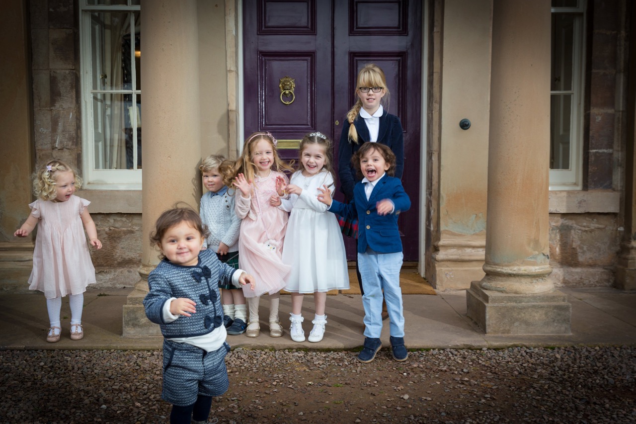 “Grown-ups, you look splendid! But most of all, Andrew and Lisa would like to thank Lucy, Alice, Ezra, Niamh, Erin, Angus, Catherine and Isabella for coming today. You all look so smart and so pretty and there will be plenty of fun for you later on, I promise!”