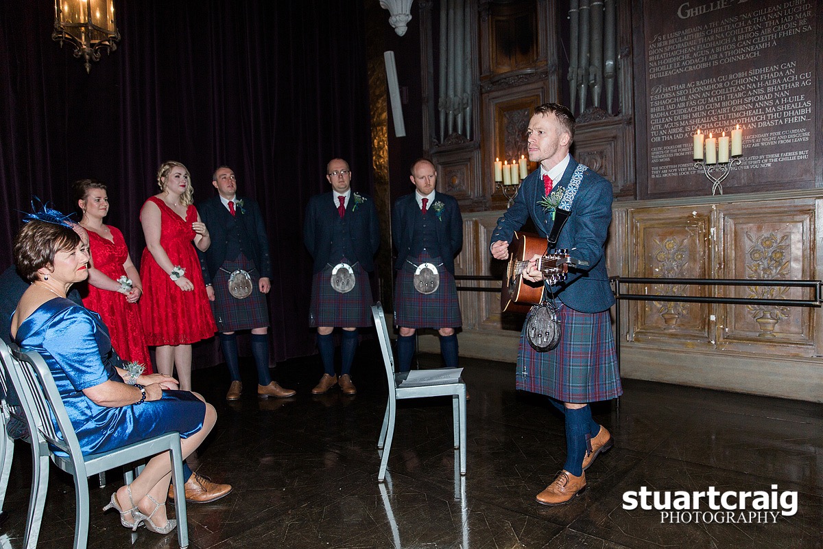 Fast forward to the dramatic setting of The Ghillie Dhu, where Fiona’s bridesmaids were her sister Mairi, and her good friend Isla. Gavin’s best men were his close friends Ant and Paul.