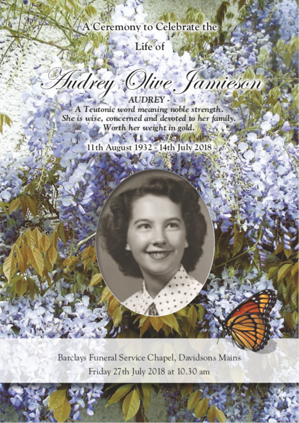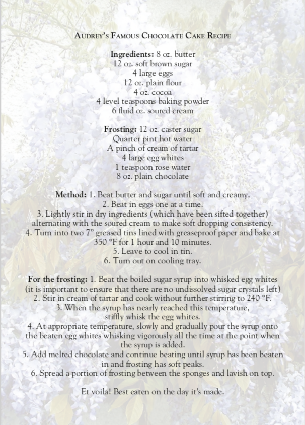 When her daughters were growing up, their friends would always ask if their mum had made one of her famous cakes, so in tribute to that memory, Avril and Carol decided to include the recipe in her Order of Ceremony.