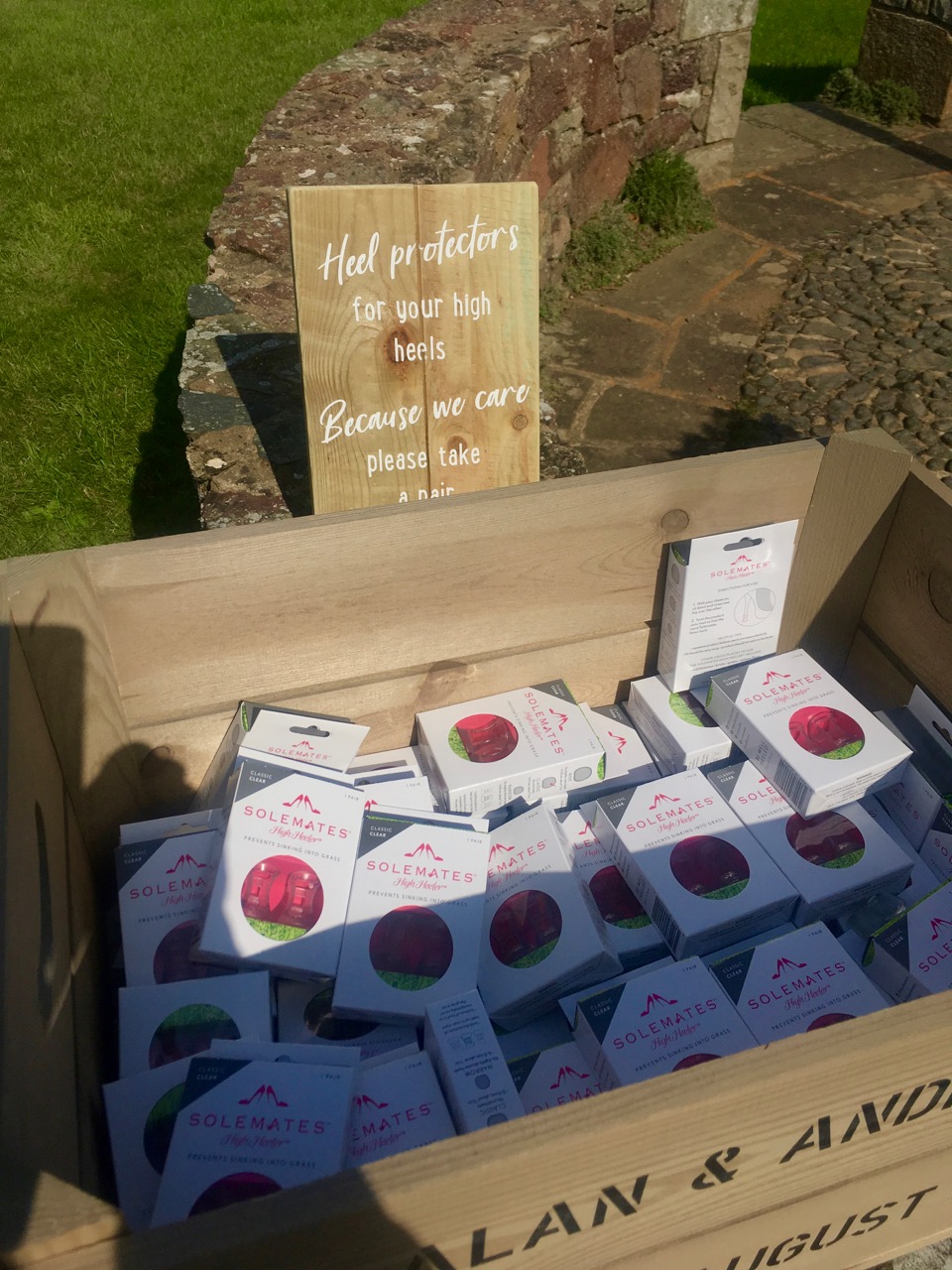 Don’t just advise your guests to get heel protectors: buy some on their behalf, and give them away on the day!