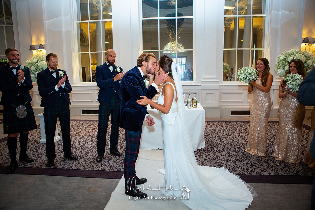 Fast forward a few years, and after a chance encounter, a happy reunion, a maritime proposal and an eight-month spell playing football in Sweden (for Ali), we all gathered to celebrate their love in the ballroom of The Principal Edinburgh, coincidentally just across the road from the club where they first met!