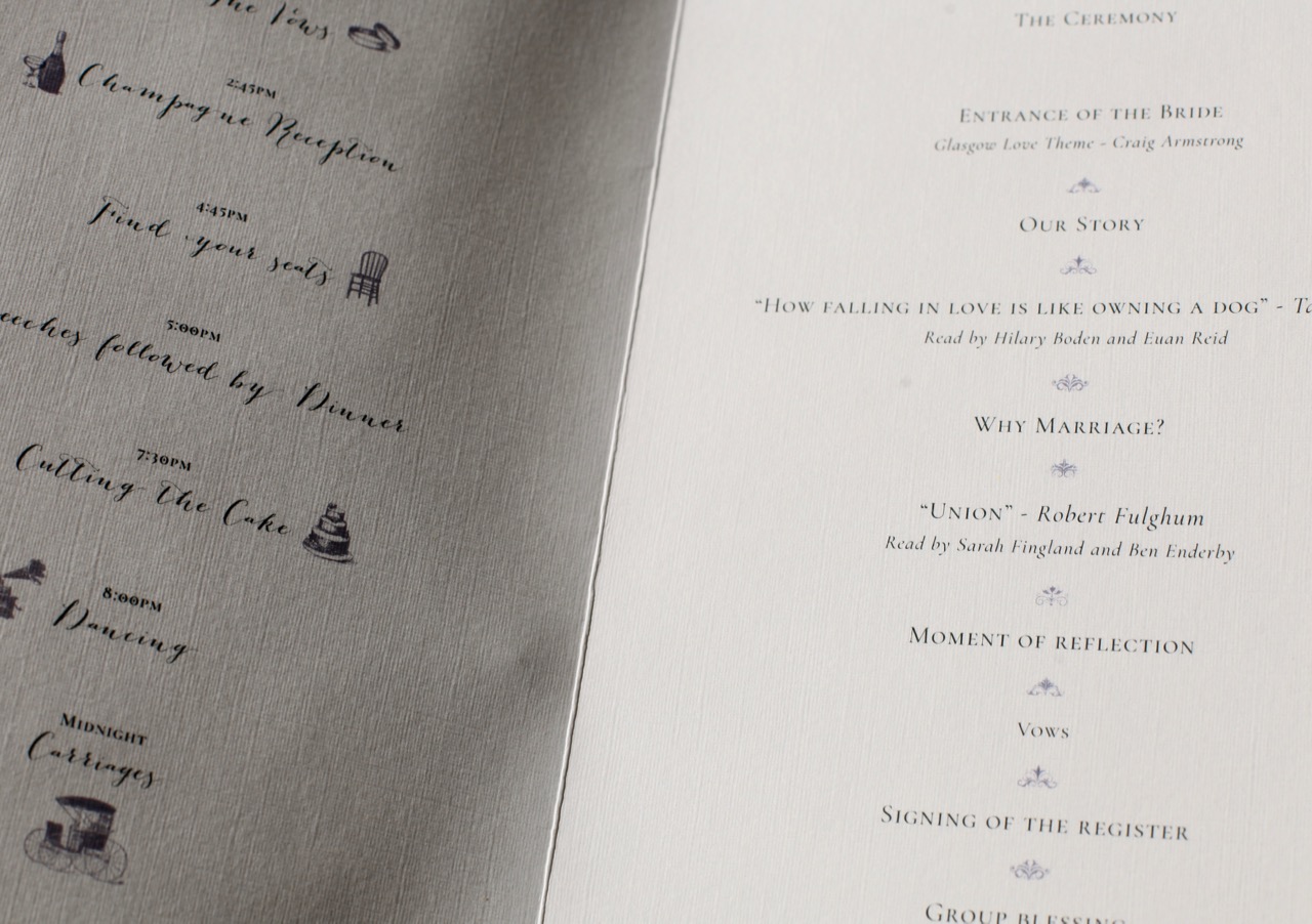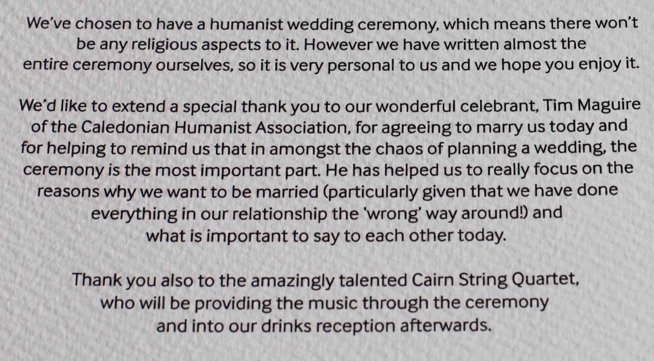 Shona is from Scotland but Simon is French, so they wanted to make sure that everyone could understand what was being said, whatever language was being spoken at the time, so they created a bilingual Order of Ceremony.