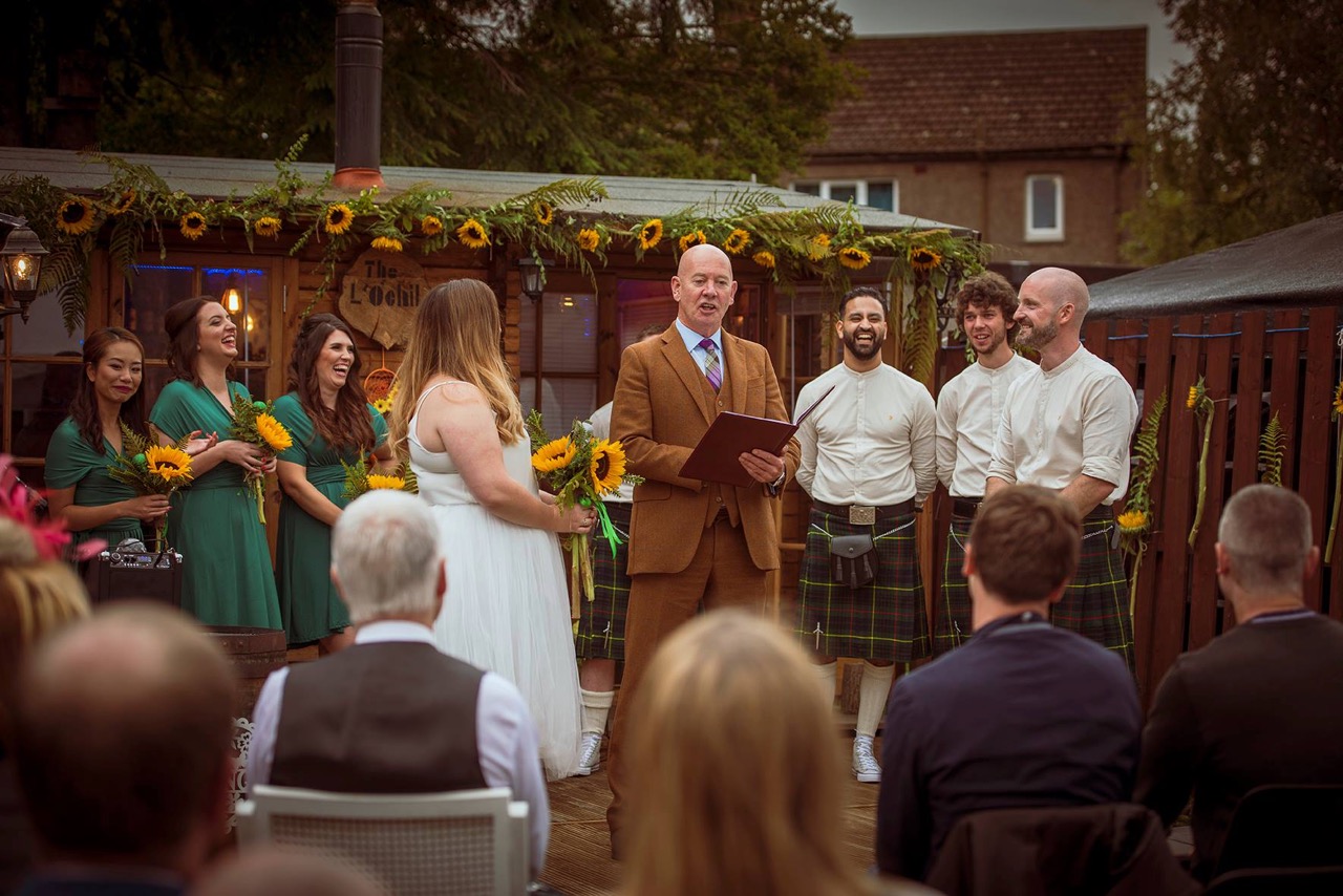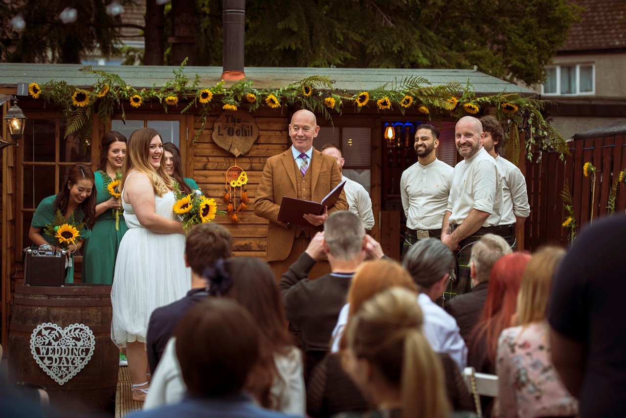 We wanted it to be a special memory for everyone, it certainly was for us! The L’Ochil (Our bar/cabin retreat in the garden) held up to its reputation – I mean how many people decide to marry in their own garden and and get to sign the marriage certificate behind their own Bar? We did 👍