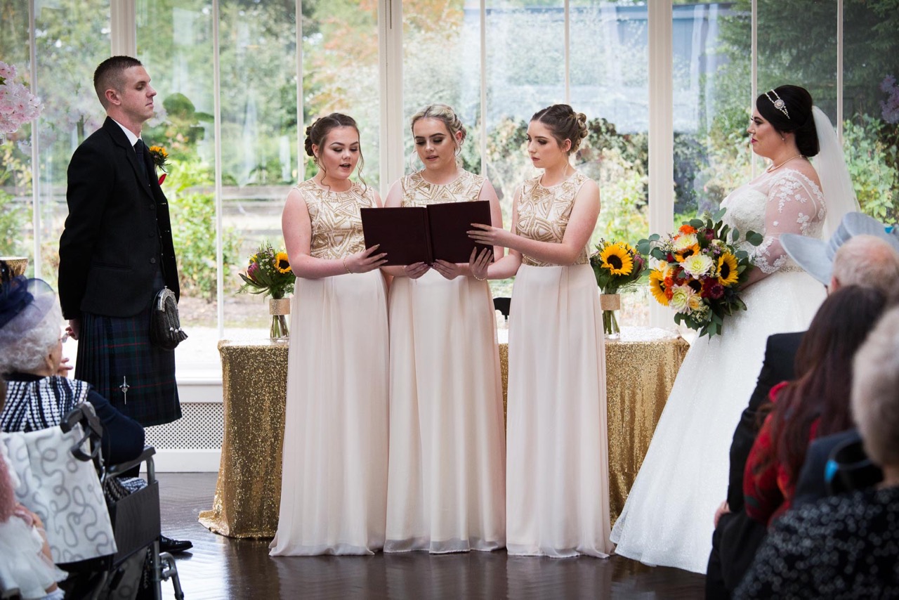Standing by Megan’s side were her maid of honour and cousin Lesley, her bridesmaid and best friend Jac, and her three beautiful nieces Daisy, Airlie and Rosie. Keeping Stephen’s glass of whisky full was best man Fraser, more often known as Rab.