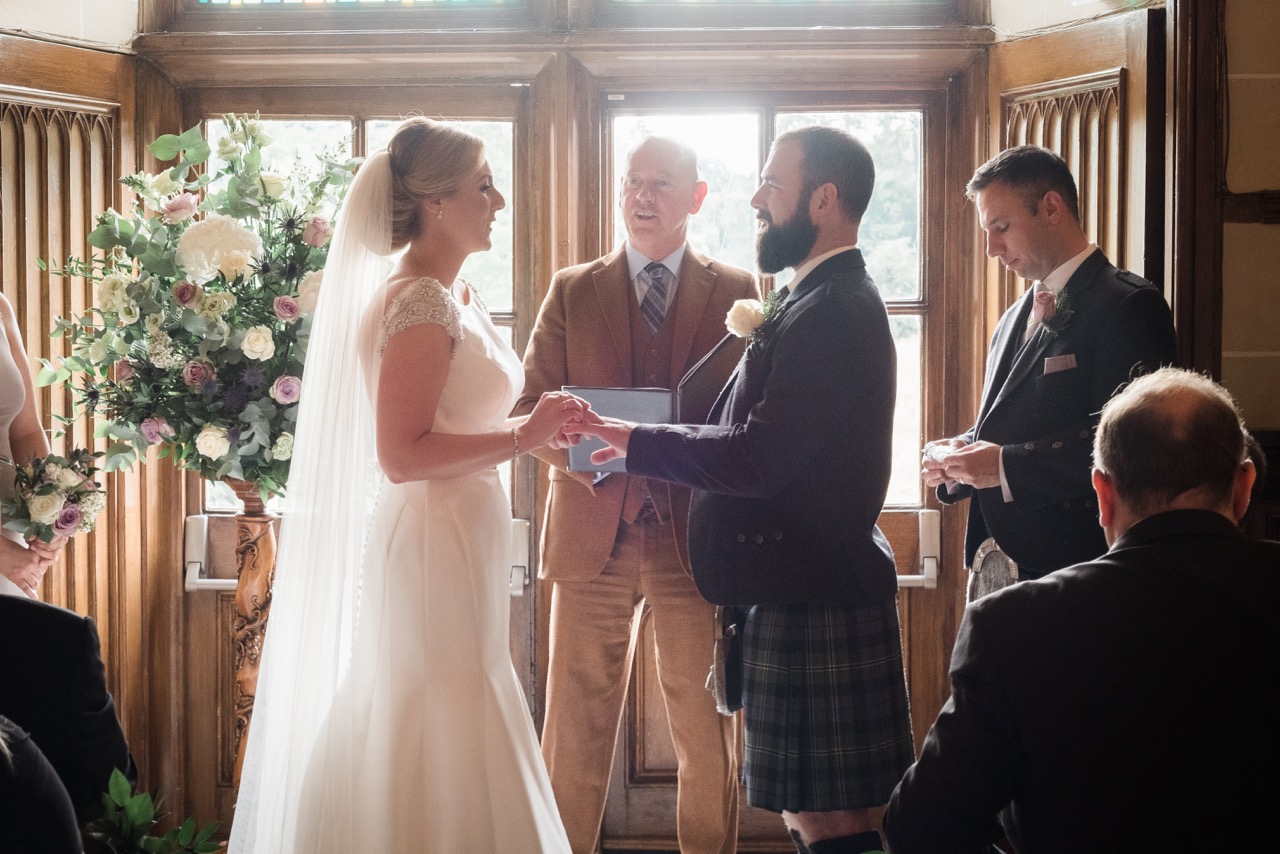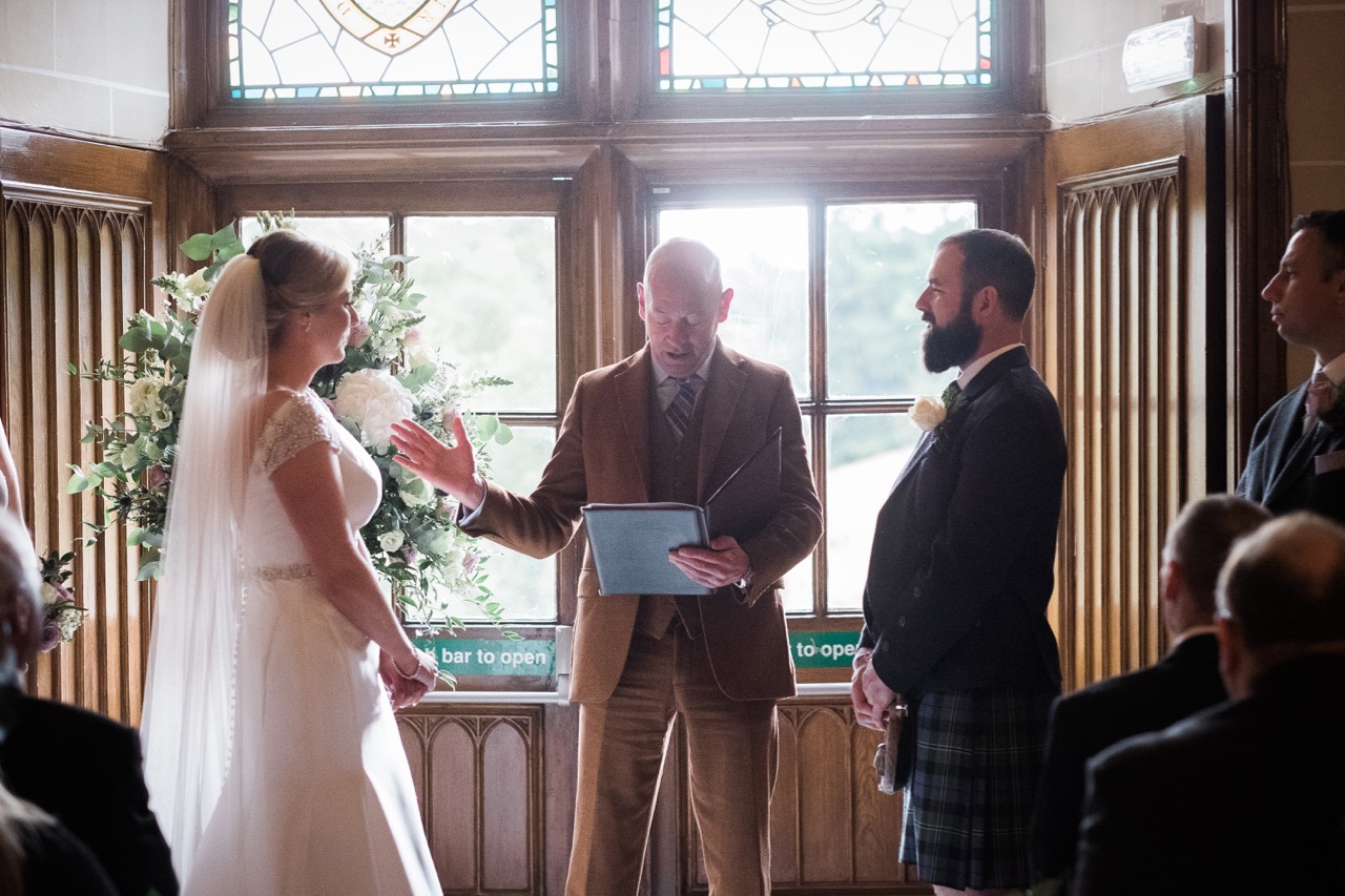 Stuart’s sister Claire gave us a reading of Union by Robert Fulghum, before their mums Val and Ann performed the first part of the candle ceremony. Emma and Stuart then exchanged their vows and best man Iain took delivery of the rings…