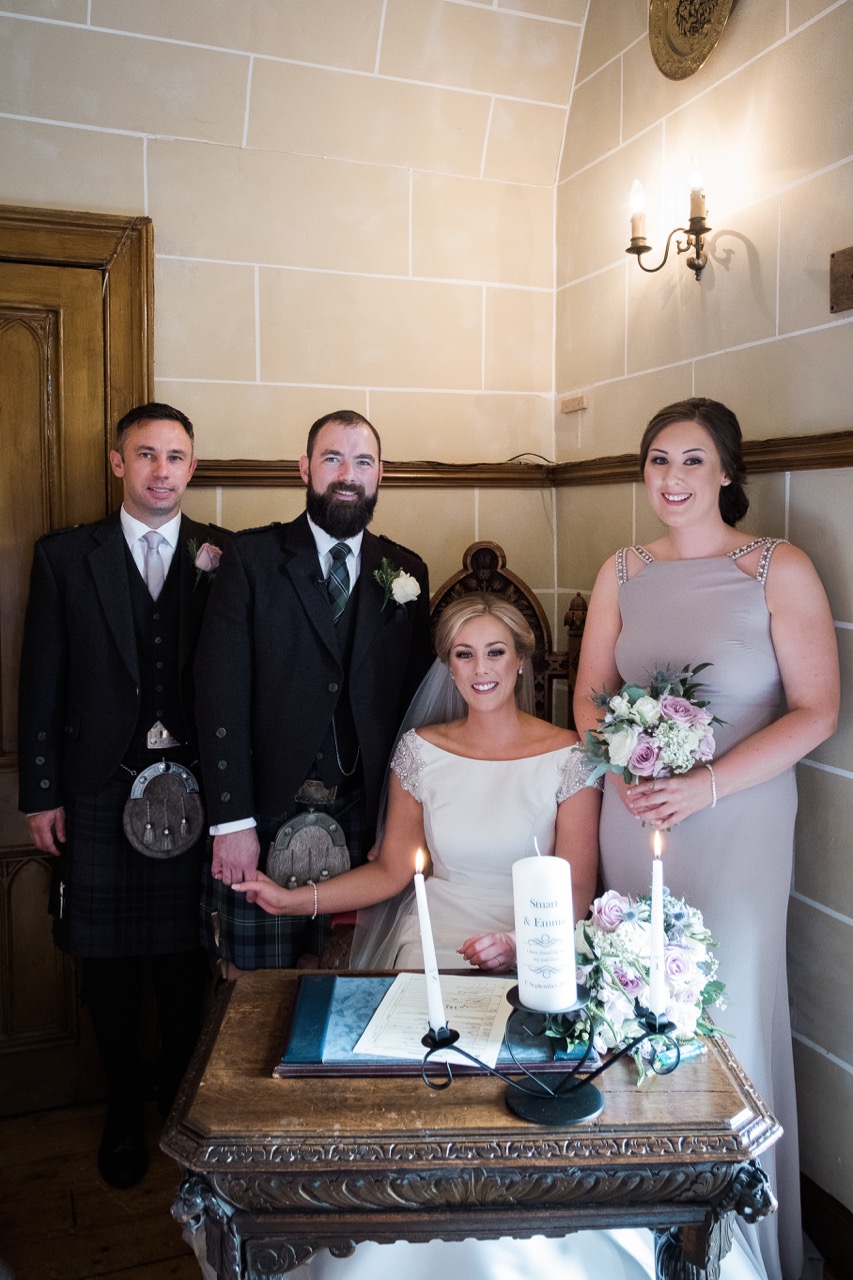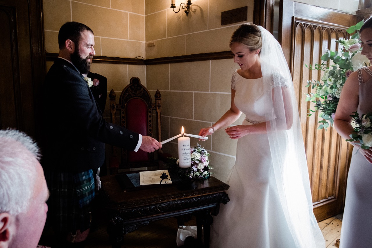 After signing the marriage schedule, Stuart and Emma then lit the third and last of the candles to complete the ritual and I sent them all on their way for a well-earned glass of bubbly.
