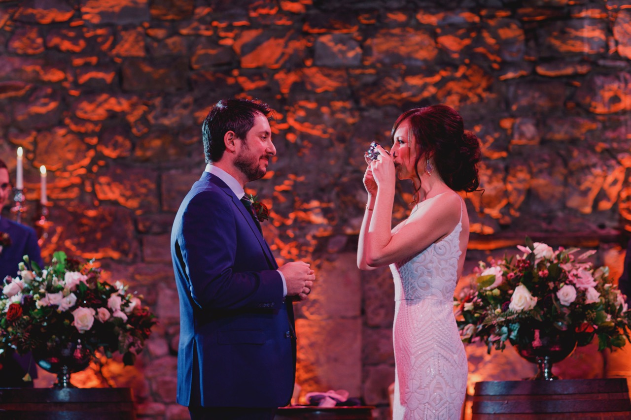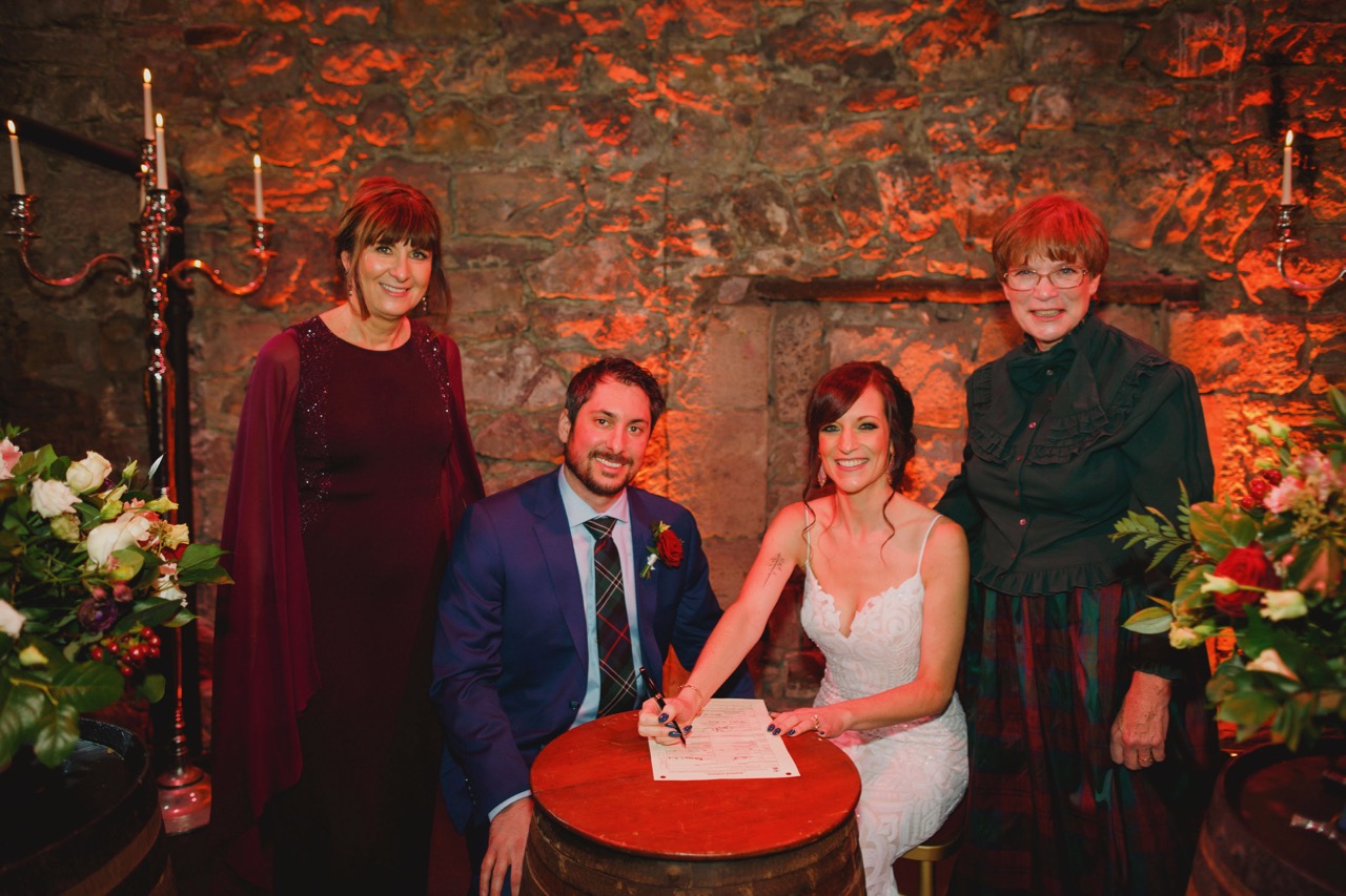 Barbara and Michael’s mothers joined us on stage to sign the marriage schedule, and then the happy couple drank from a quaich, an idea unfamiliar to most of the guests who’d flown thousands of miles to be with them on the most important day of their lives.