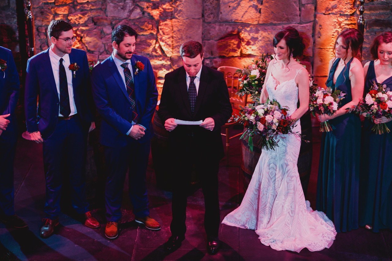 Their friends Whitney and Nick both spoke, as did Michael: he ever read out what Barbara had decided she wasn’t going to say after all, which got a big laugh, and then, after a pause for quiet contemplation, I asked the guests to make some promises to them before they spoke their vows directly to one another.
