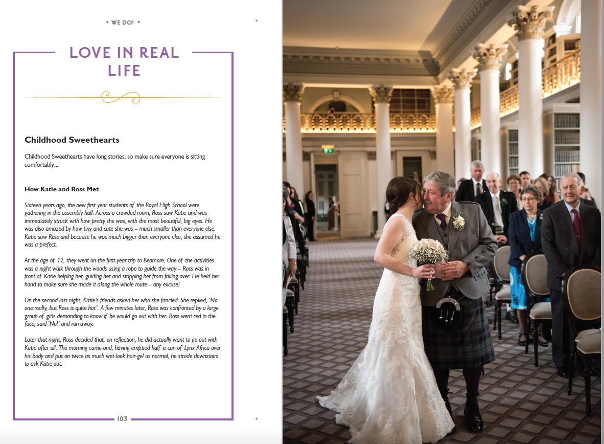 Thank you very much for sending the link to your book. We very much enjoyed looking through it – so much so, that we have put our order in for a hard copy already. It is wonderfully informative, but so light hearted and easy to read. The design of the book is lovely and the images of weddings are absolutely stunning. We believe it covers everything you need to know about a humanist wedding, as well covering the things you didn’t think you needed to know. It illustrates how you can create your own ceremony in the way that you feel that would be most personal to you, and we cannot wait to go through the experience with our own wedding.