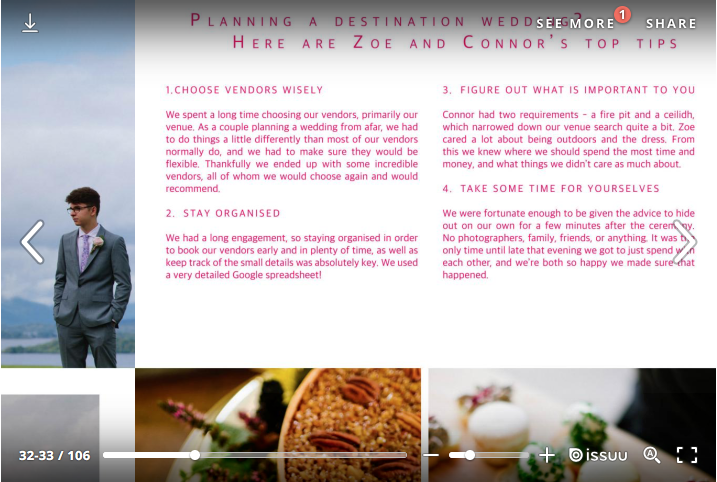 They recently launched their own online magazine, We Fell In Love, and their second issue is all about how to plan your perfect day from 10,000 miles away.