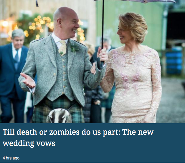 My thanks to all the couples who are featured in it: Eli and Kate, Elizabeth and Bengtis, Natasa and Grant, and in the headline – but sadly not the article itself – the originators of ‘Until death or zombies do us part’, Kellie and Kevin. And of course thanks to the lovely Ditte of First Light Photography for the photo above