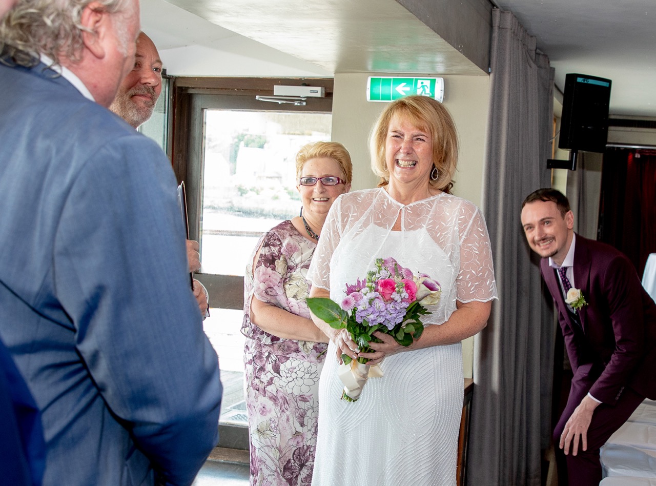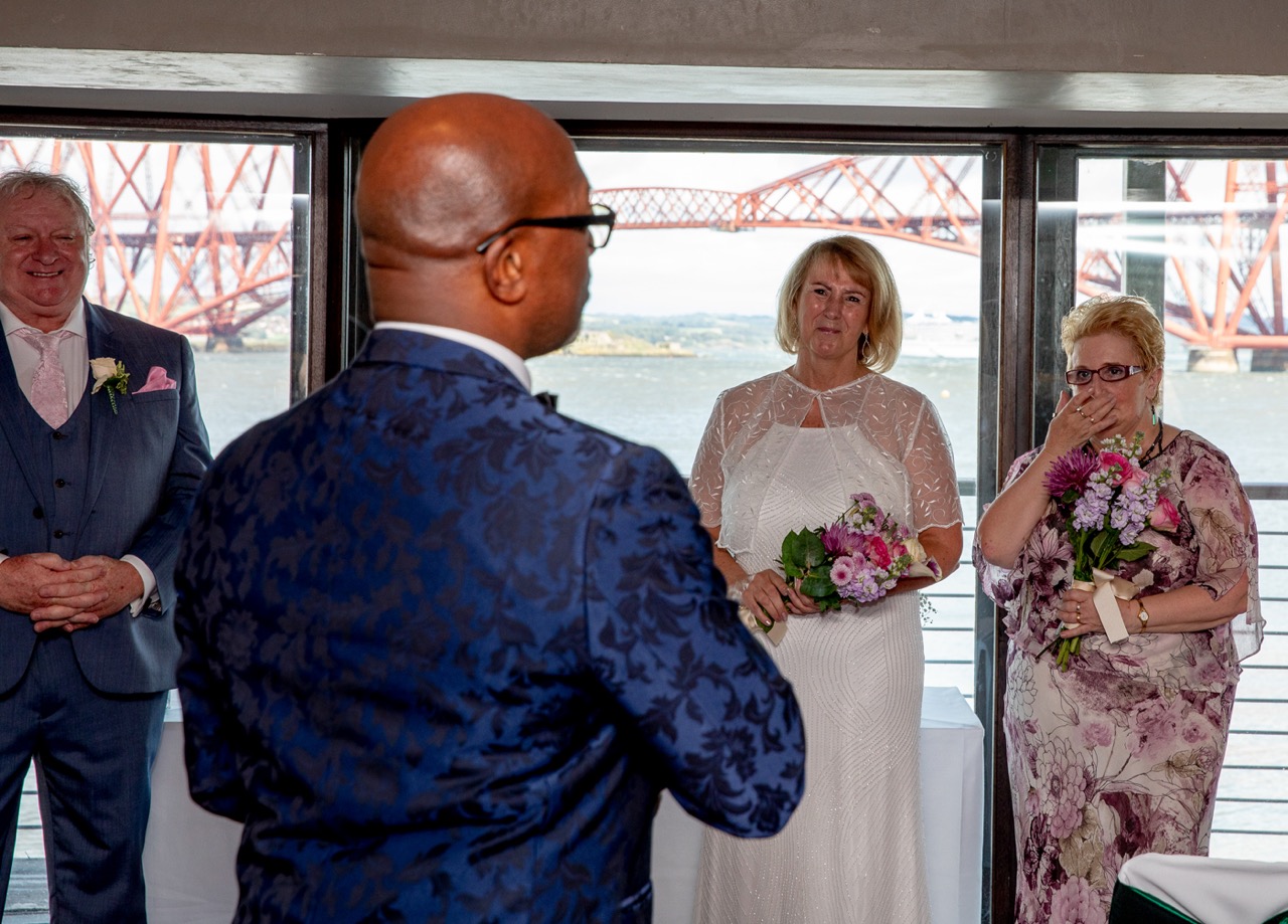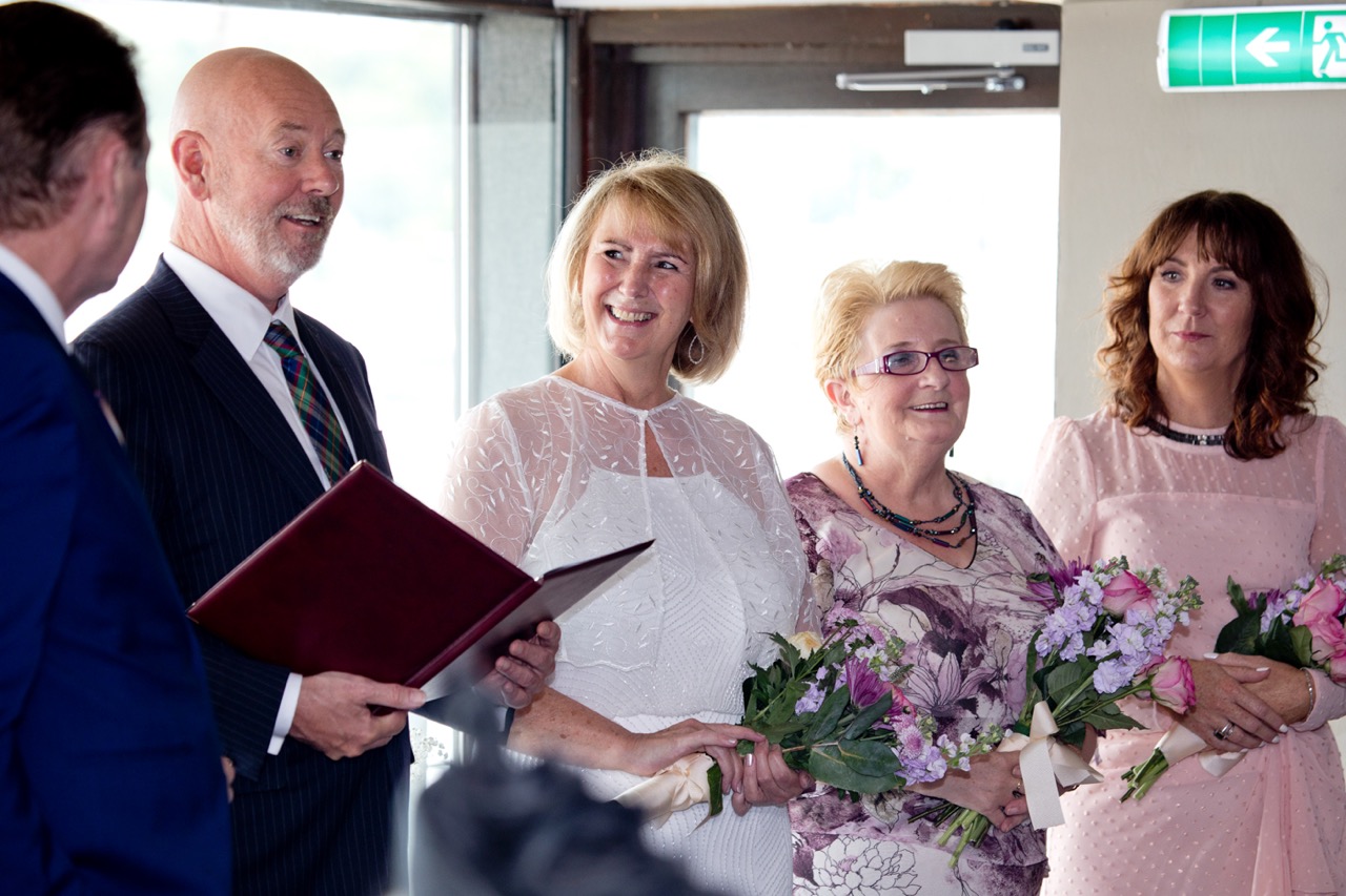 In a lovely twist to the usual entrance, Joanne came in on the arm of Phil’s son, Ruari.