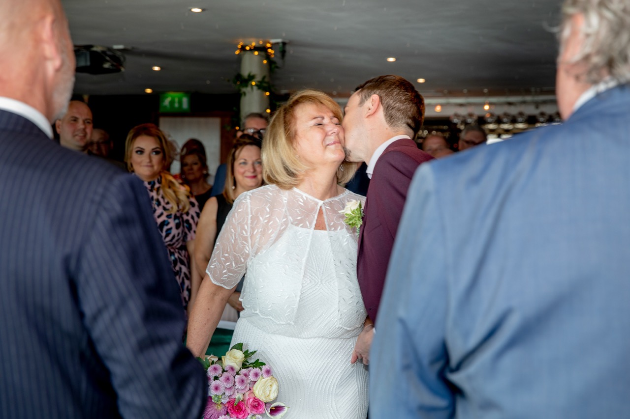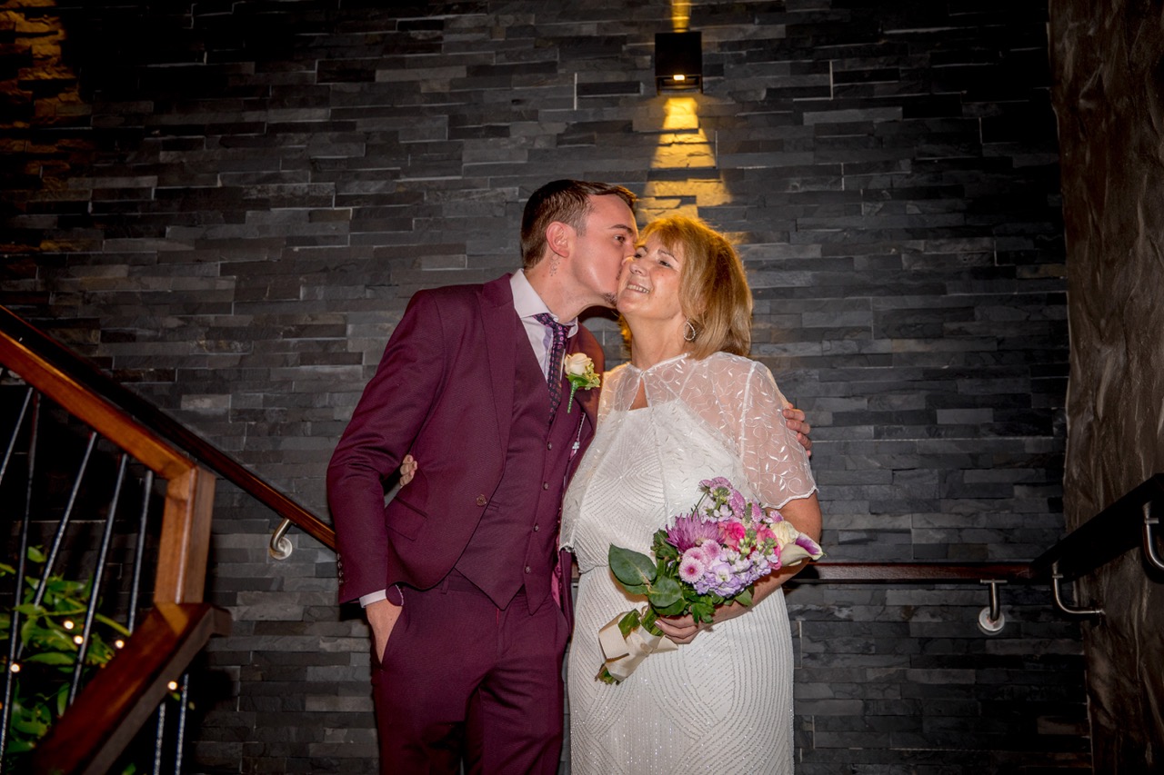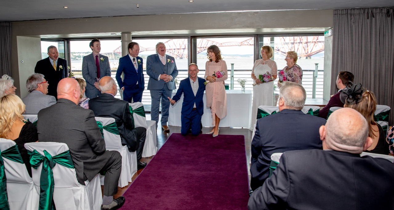 In a lovely twist to the usual entrance, Joanne came in on the arm of Phil’s son, Ruari.