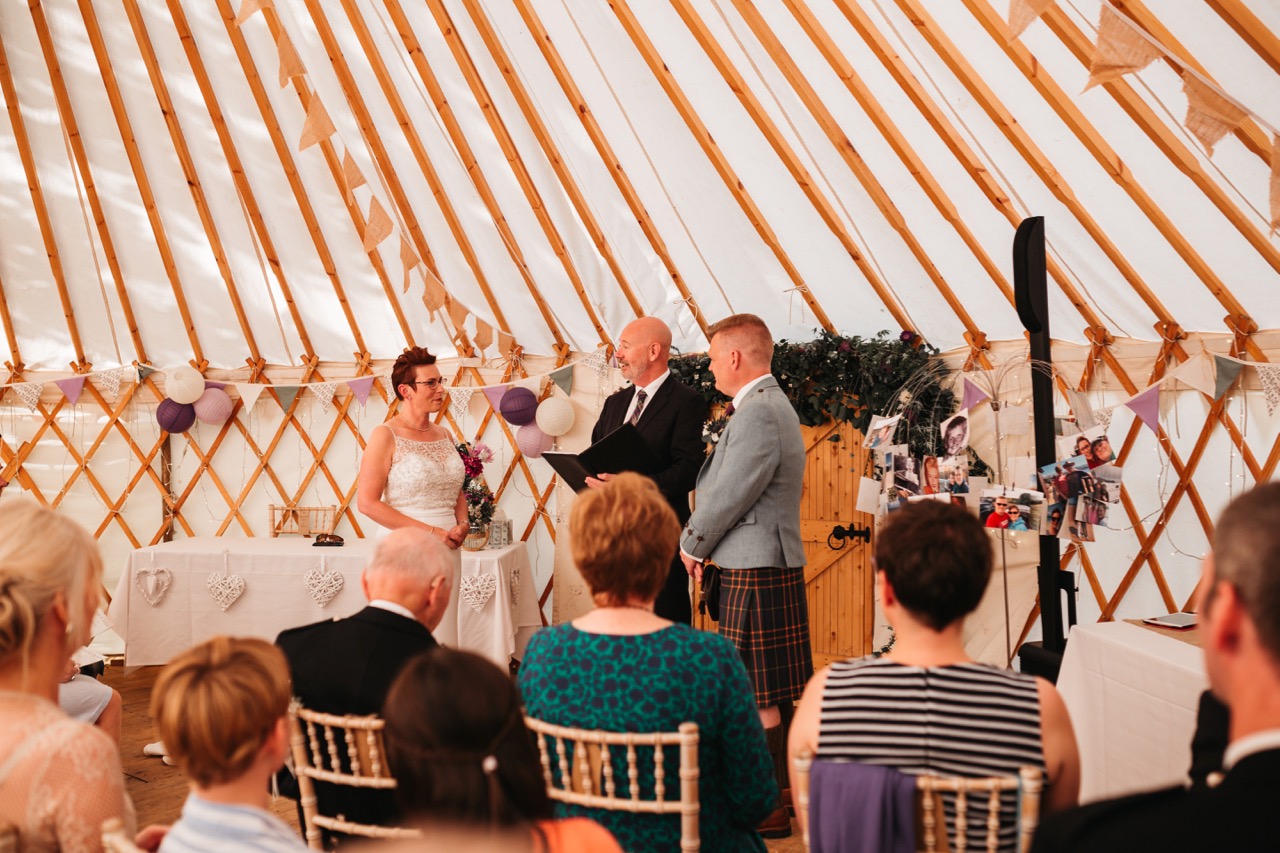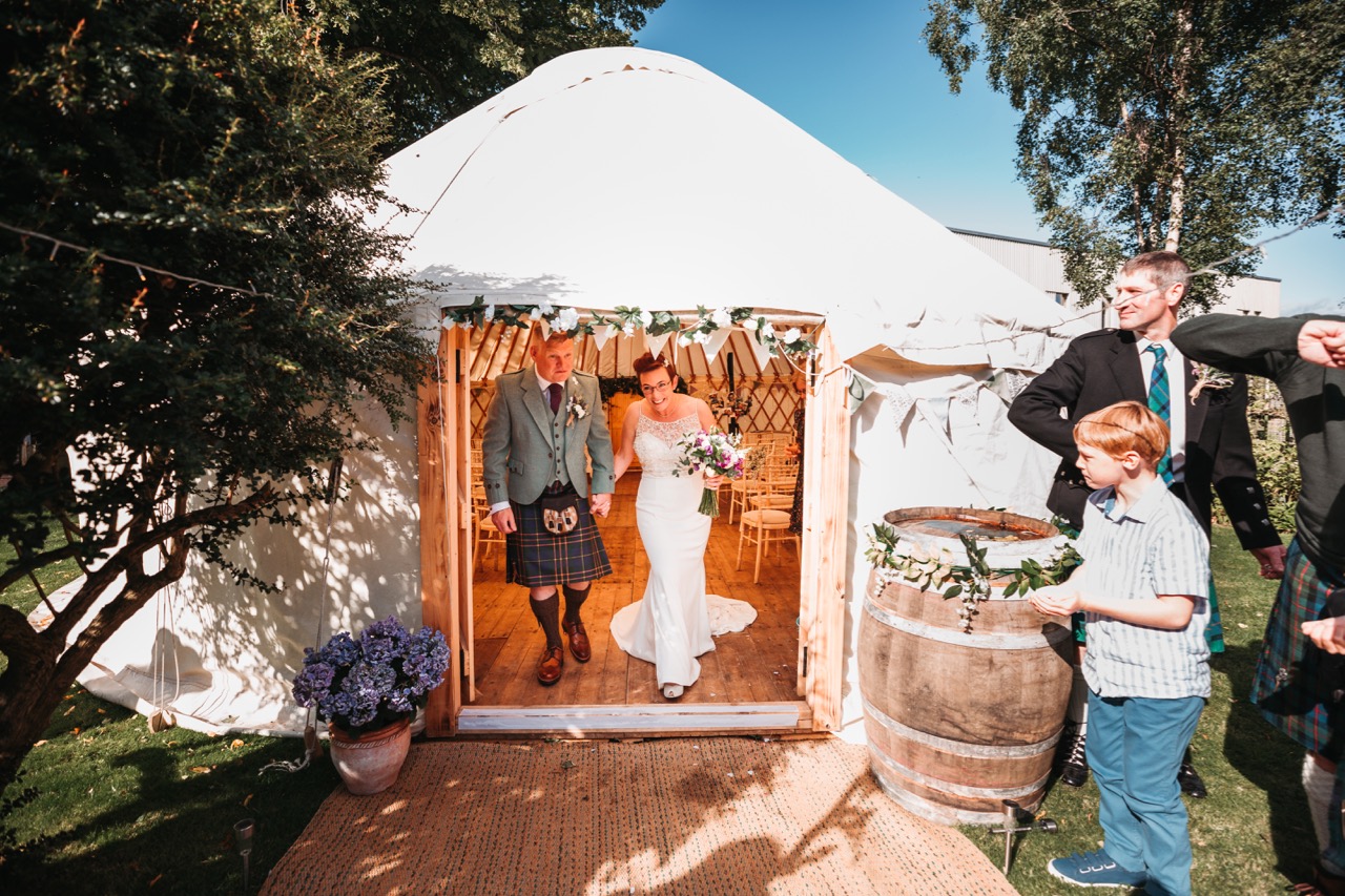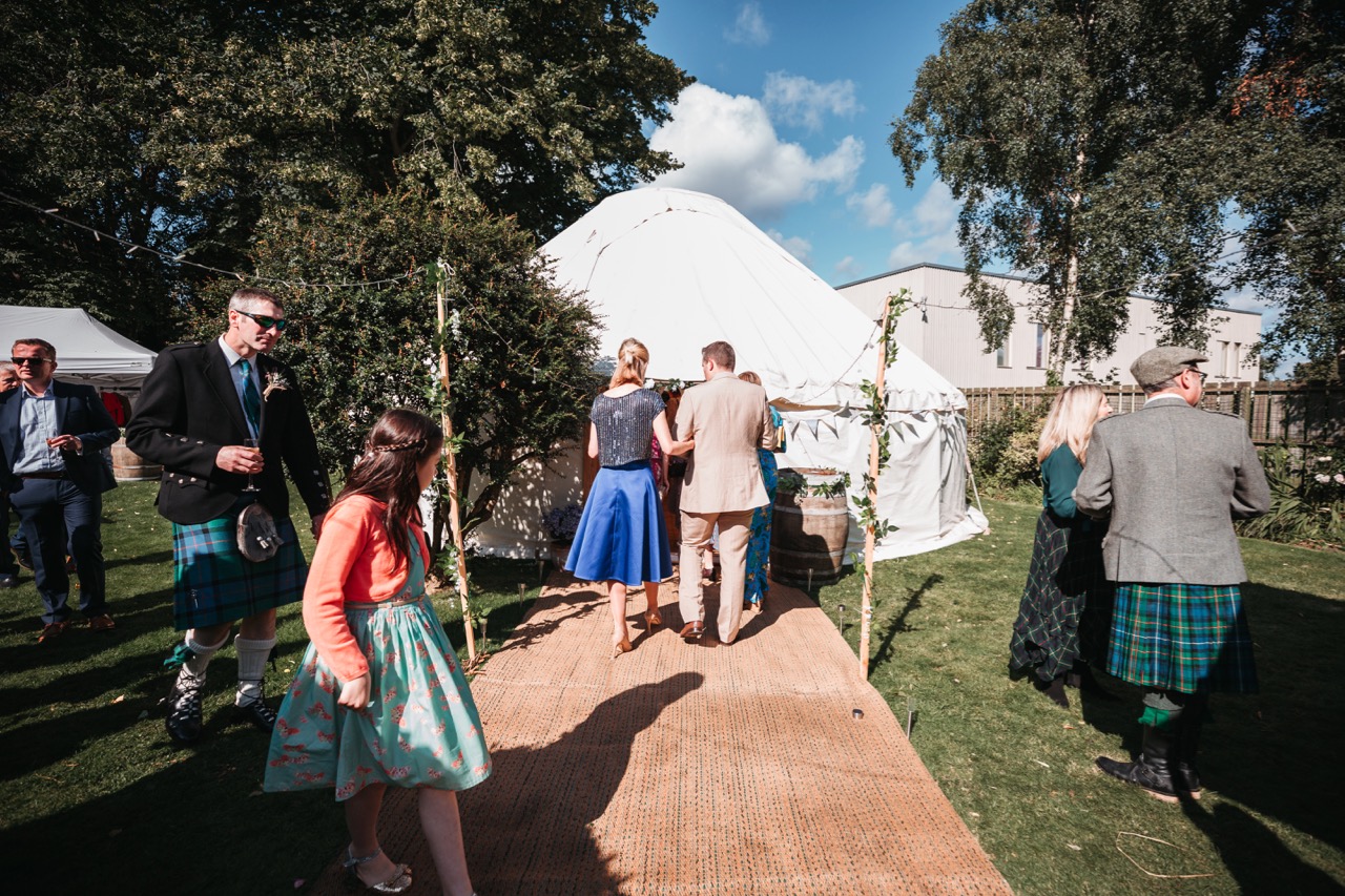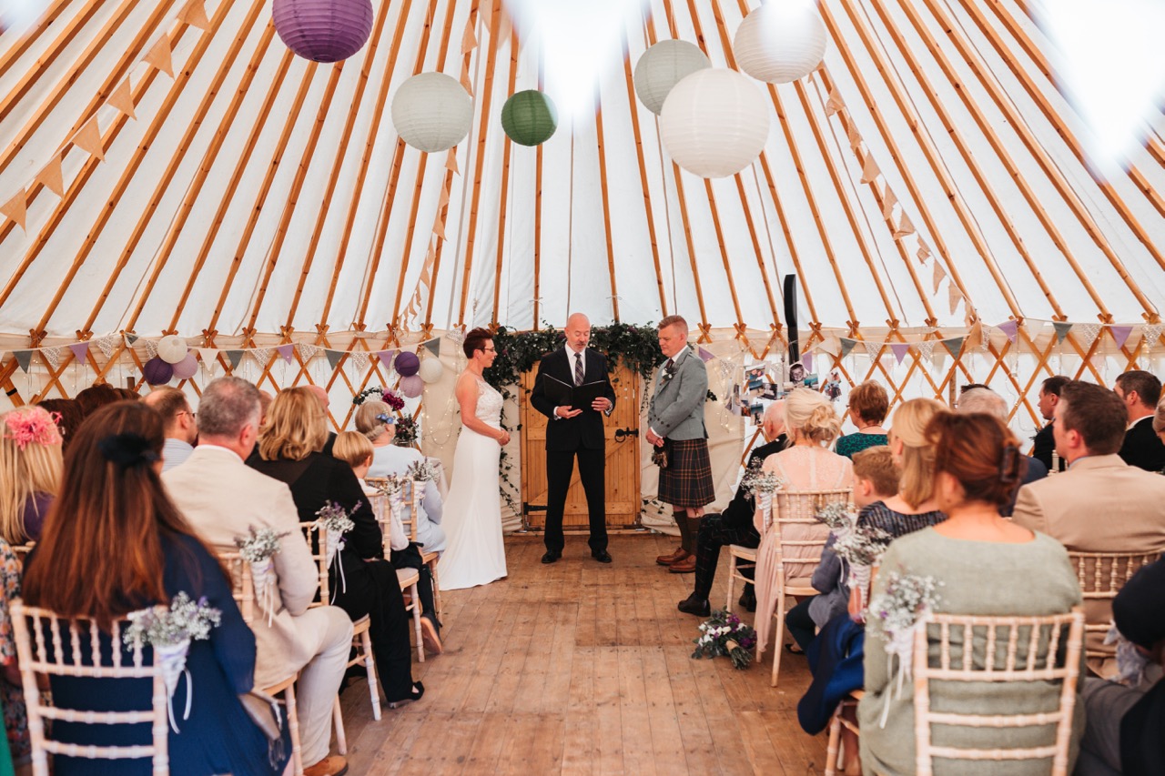 The new home came with Richard’s new job: they were moving into a Lodge at Fettes College where he is now the Estate Manager, so there was a lot of work to do in a very short space of time. Luckily, they’re both extremely organised and highly motivated people, and when I arrived, the garden had been decorated, an a fabulous yurt had been erected where the ceremony was to take place.