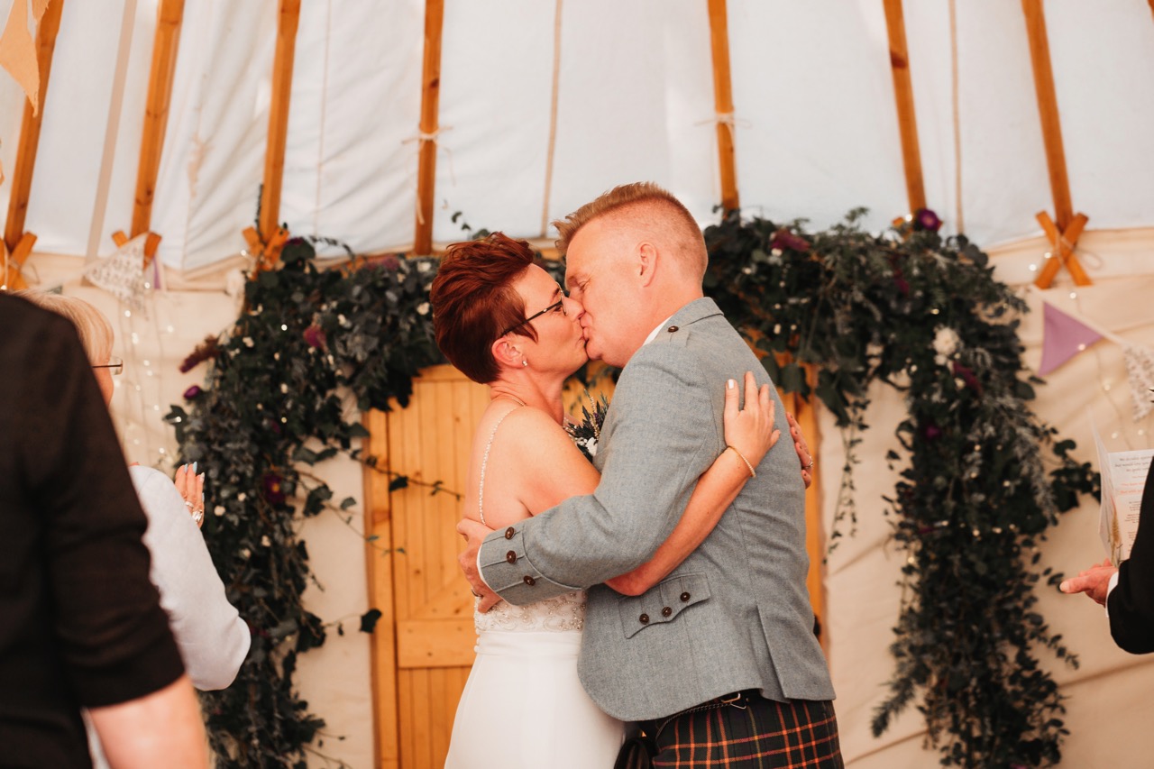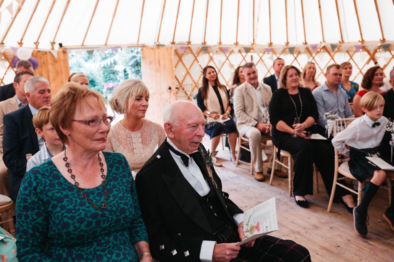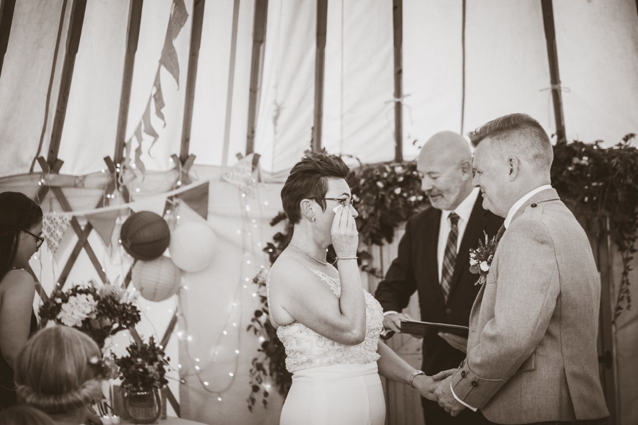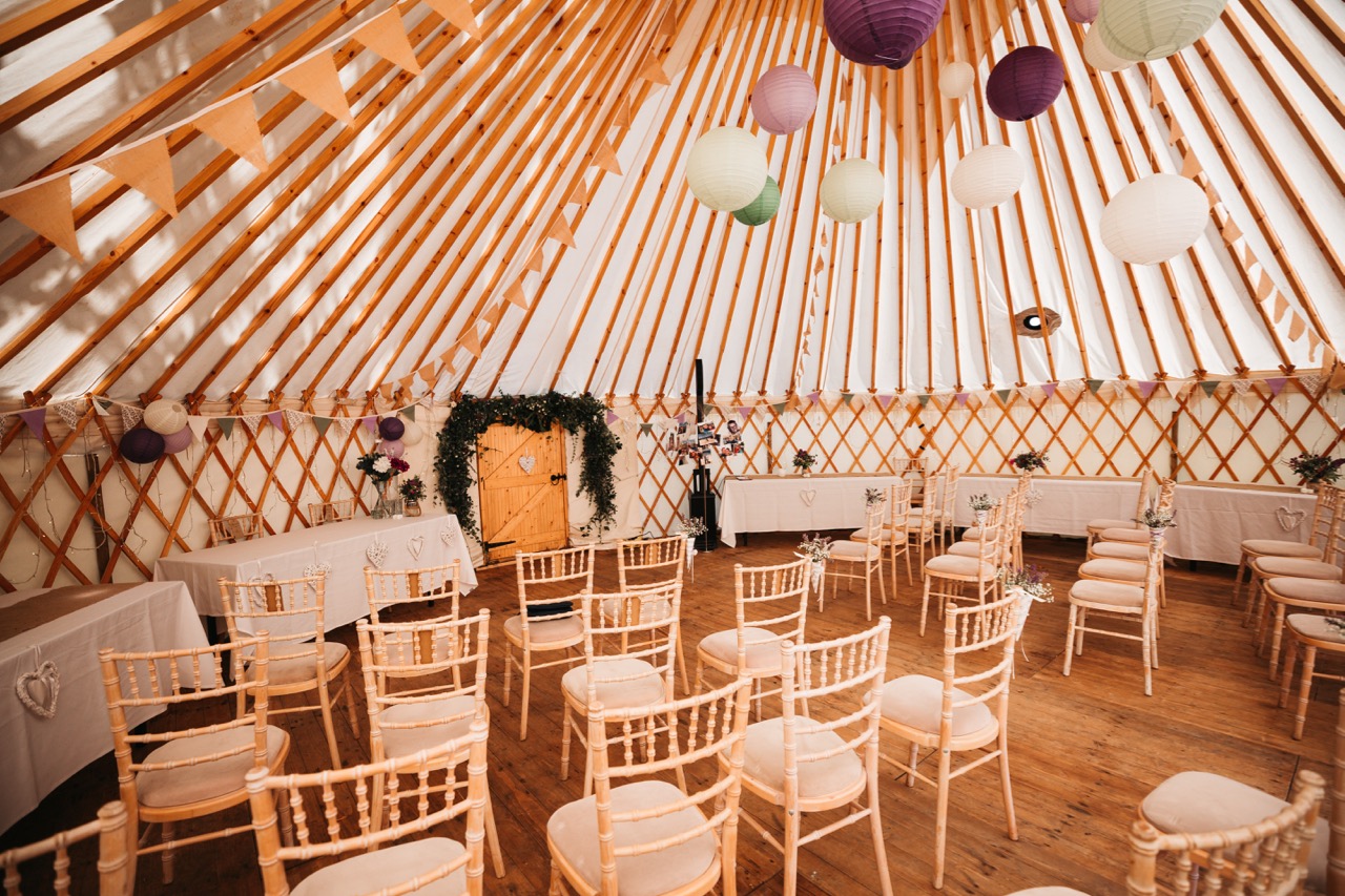The new home came with Richard’s new job: they were moving into a Lodge at Fettes College where he is now the Estate Manager, so there was a lot of work to do in a very short space of time. Luckily, they’re both extremely organised and highly motivated people, and when I arrived, the garden had been decorated, an a fabulous yurt had been erected where the ceremony was to take place.