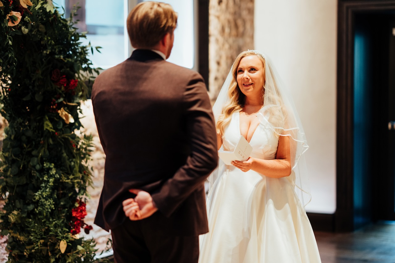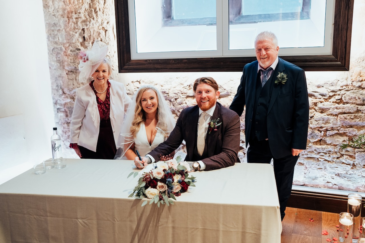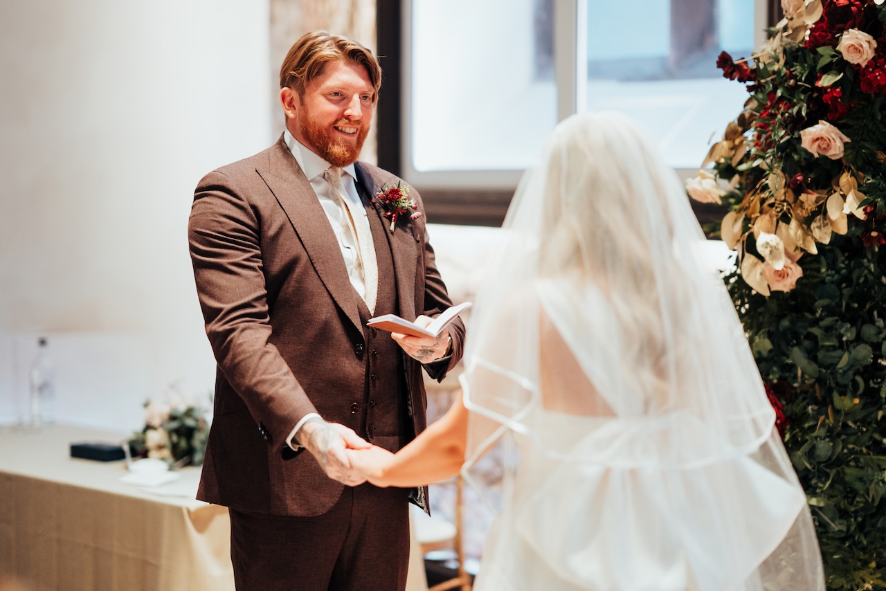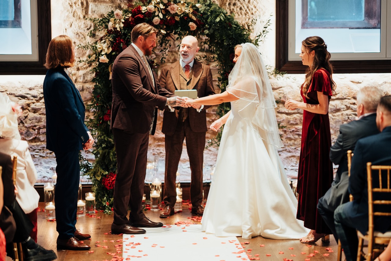 We then took a moment of quiet contemplation to remember the people who couldn’t be with us, especially Neil’s mother Helen, and Adele’s father Frank. I always encourage couples to do that at some point during the ceremony, and I think the best moment is the one Neil & Adele chose; just before The Vows. It allows your guests to join you in honouring your loved ones, and of course, it gives people of faith time to say a silent prayer.